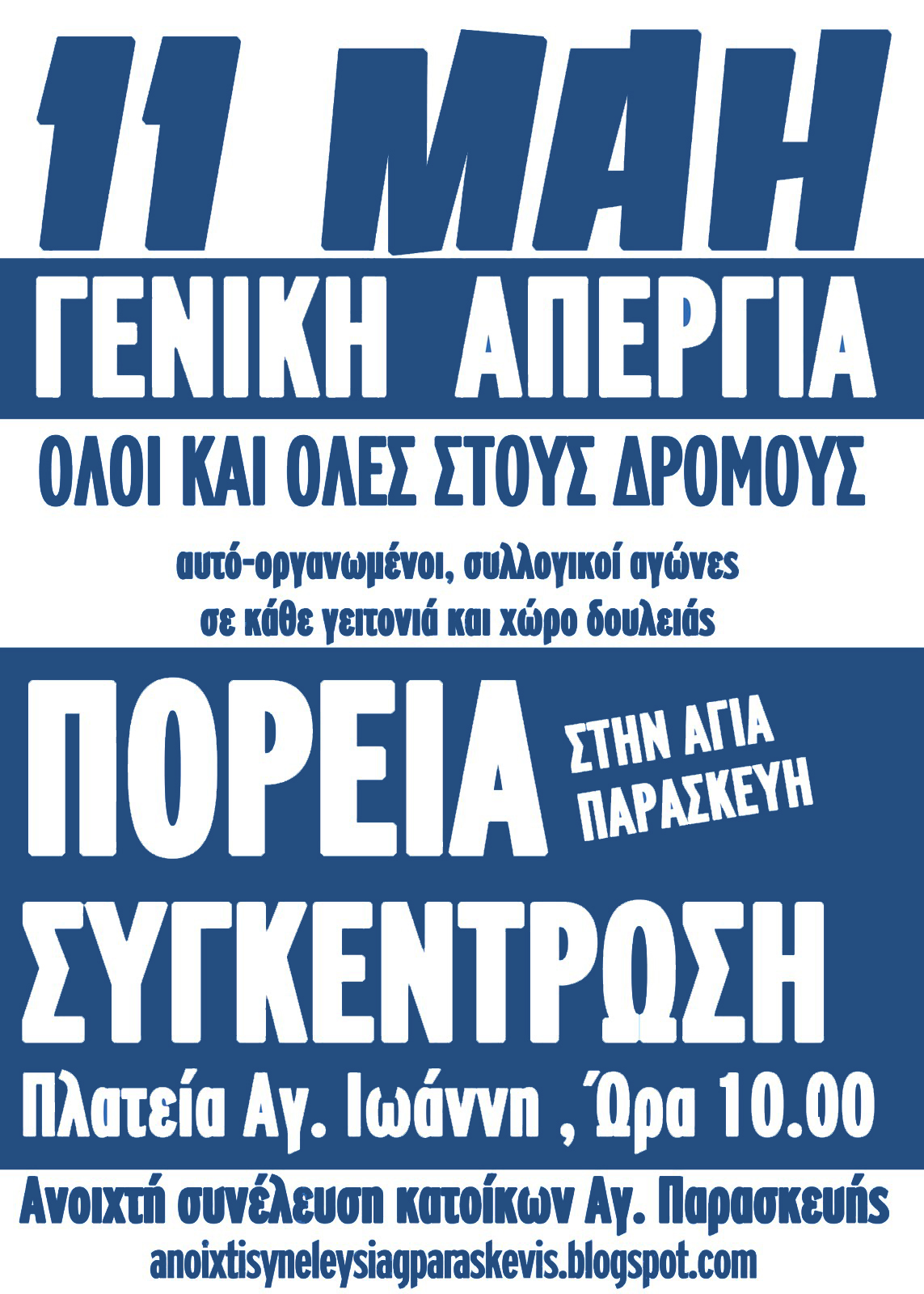 Συγκέντρωση και πορεία 11 Μάη στην Αγία Παρασκευή